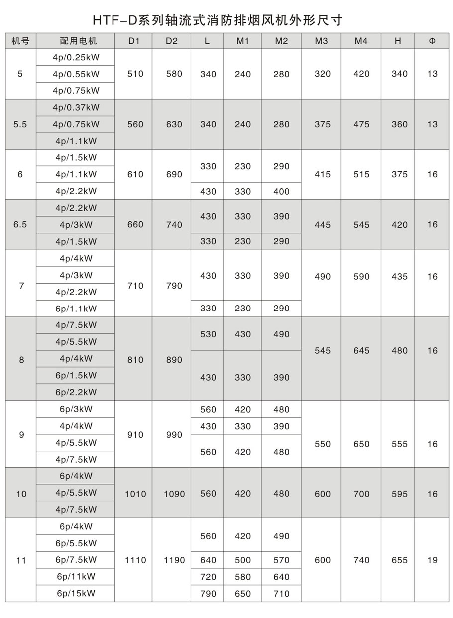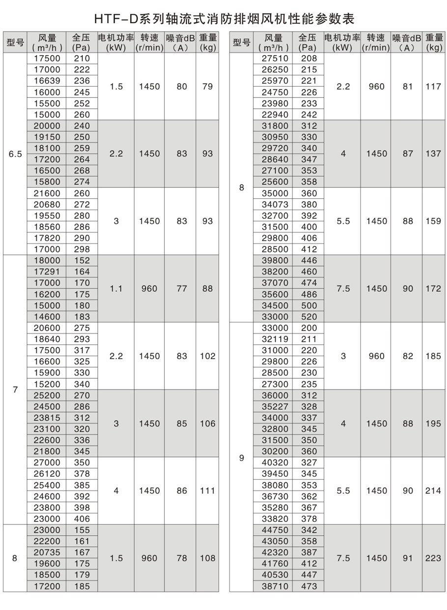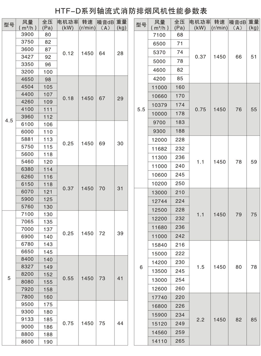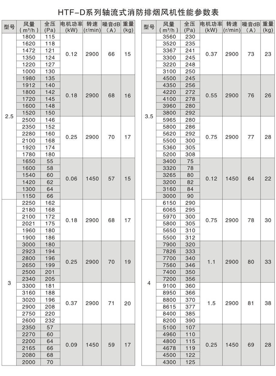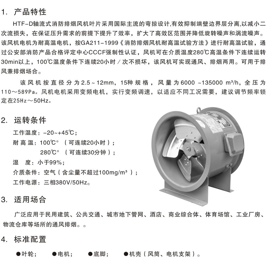 - HTF-D系列轴流式消防排烟风机